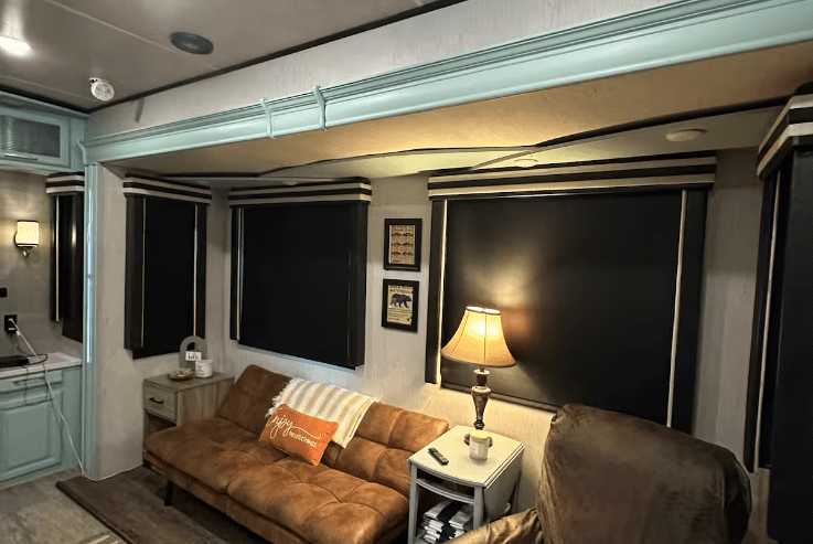 Experience the privacy and immersion of the deep woods with the unmatched convenience and luxury of a high-end RV.