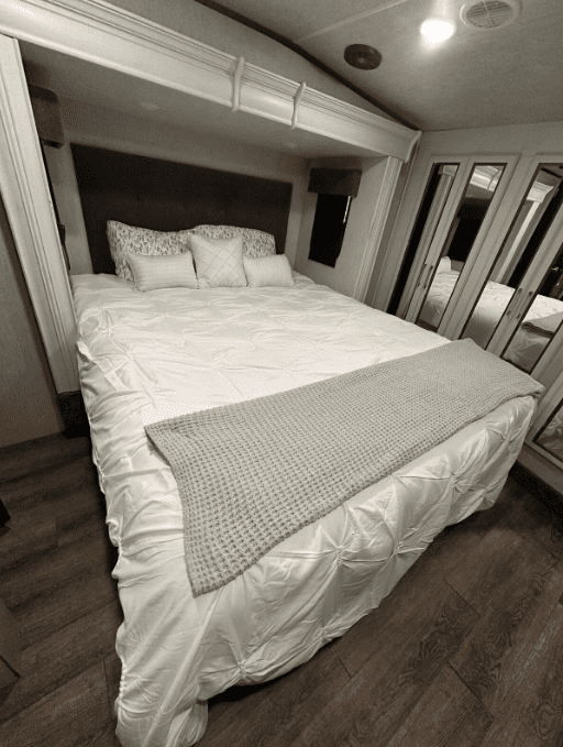 • Premium Comfort: Sleeps four comfortably and is packed with high-end features, including a residential-sized refrigerator, large pantry, farm sink, and a full kitchen.