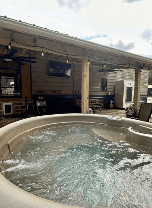 • The Ultimate Outdoor Setup: Melt your stress away in the hot tub, where you can relax while listening to the tree frogs or—for the sports fan—turn on the outdoor TV (a feature one recent guest's husband "spent the majority of his time out there" enjoying!).